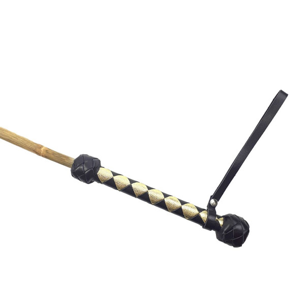 Тростина бамбукова 75 см, рукоятка натуральна шкіра, чорно-золота