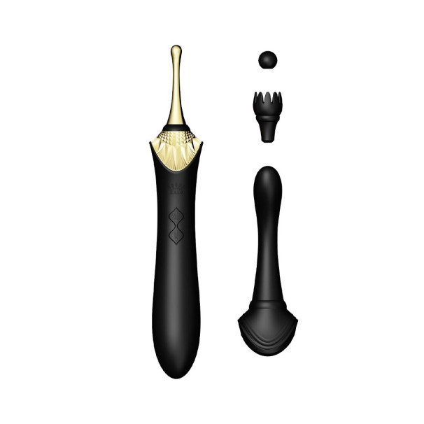 Вагінально-кліторальний вібратор Zalo — Bess Obsidian Black, мультифункціональний із насадками