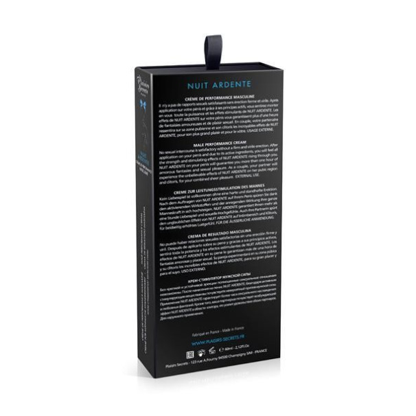 Крем для поддержания эрекции Plaisirs Secrets Male Performance Cream Nuit Ardente (60 мл) - при нанесении на пенис вы почувствуете невероятный прилив мужской силы. Применение крема обеспечивает более часа сексуального наслаждения и сексуальных фантазий, кроме того ваша партнерша так же почувствует возбуждающий эффект в области клитора, что усилит удовольствие обоих партнеров.
