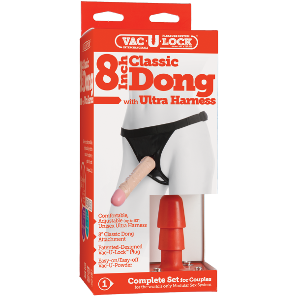 Vac-U-Lock 8 Classic Dong Ultra harness - страпон с рельефной насадкой, телесного цвета. Страпон, отлично подойдет для того, чтобы разнообразить интимные игры, как в гетеросексуальных, так и в лесбийских парах. Насадка имеет удивительно рельефную поверхность для насыщенной стимуляции. Изготовлен фаллос из безопасного и приятного на ощупь материала поливинилхлорида. При изготовлении использовалась антибактериальная технология Sil-A-Gel. Регулируемые виниловые трусики удобны и универсальны. Особенность продукции этой компании в том, что для одних трусиков Вы можете выбрать несколько разных насадок.