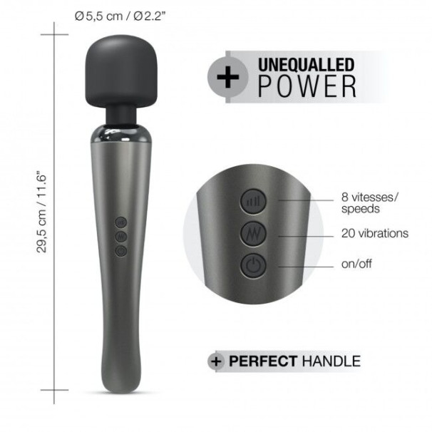 Элегантный и мощный вибромассажер Dorcel Megawand Chrome Silver перезаряжаемый, 160 режимов - это 160 вариантов интенсивной стимуляции тела и ваших эрогенных зон. Снять напряжение в конце рабочего дня с уставших мышц? Избавиться от боли в спине? Просто сделать себе приятно нежными прикосновениями к коже и телу. Вибромассажер легко справиться с этими задачами благодаря крупной силиконовой головке, 20 режимам вибрации и 8 уровням интенсивности. Сильные потоки вибрации позволят вам максимально расслабиться от ощущения интенсивного массажа или насладиться волнами сногсшибательного клиторального оргазма. Вибромассажер полностью водонепроницаемый, поэтому вы легко можете совмещать банные процедуры с массажем или клиторальной стимуляцией. Управление осуществляется с помощью трех кнопок на корпусе: одна кнопка - включение/выключение; вторая - переключает режимы вибрации; третья - переключает уровни интенсивности.