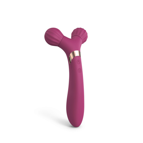 Вібратор-масажер для пар 2 в 1 Love To Love FIREBALL - PLUM STAR — універсальний пристрій, що поєднує функції масажера та вібратора, створений для спільного задоволення. Масажна частина оснащена двома обертовими кульками, які глибоко промасажують м'язи, а вібраторна частина забезпечує інтенсивну стимуляцію. Обидві частини мають 9 режимів вібрації, які керуються окремо, що дозволяє налаштувати інтенсивність для кожного партнера.